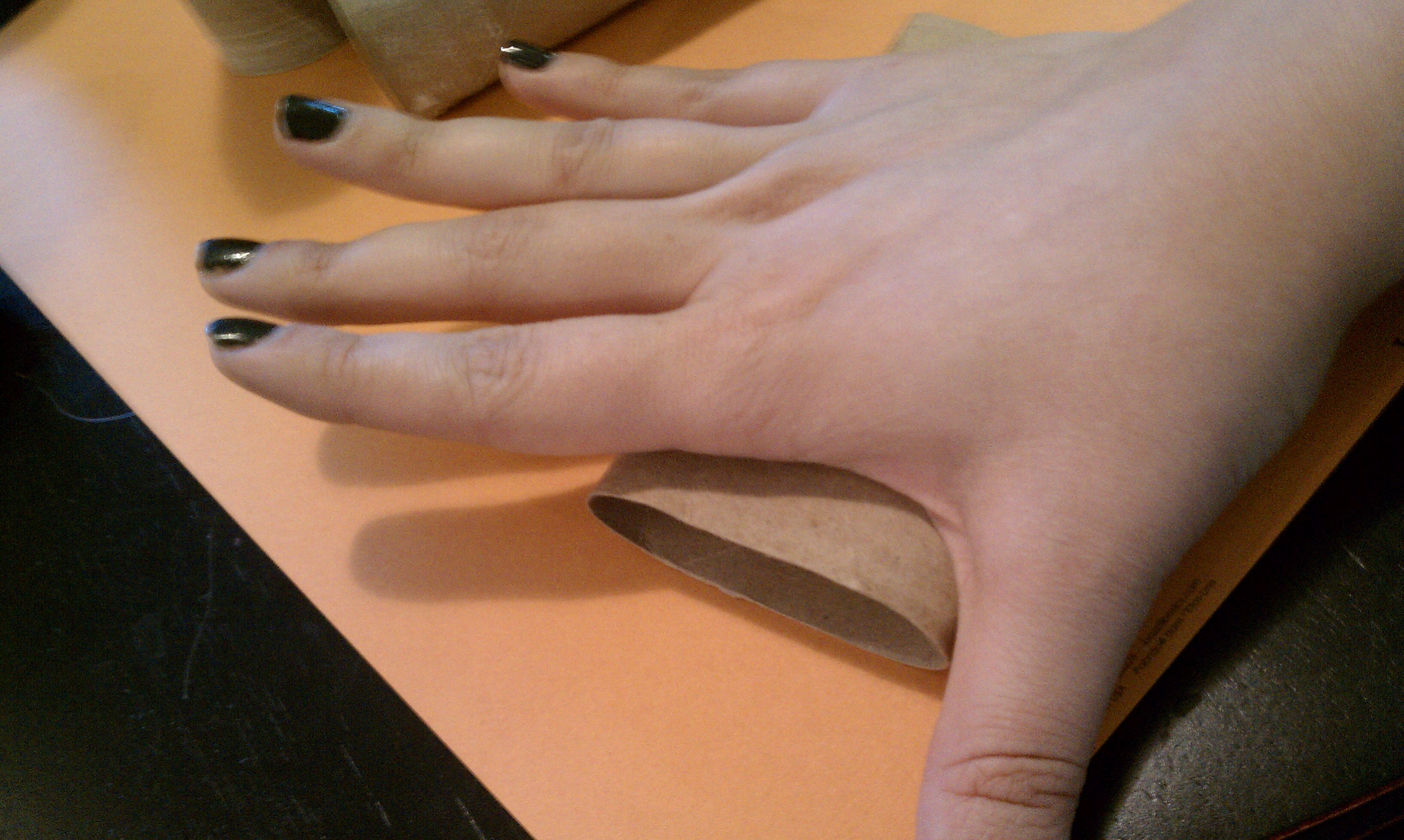 To make the paper ‘leaves,” start by flattening each paper roll with your hand.