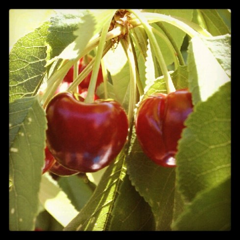 It was a gorgeous, sunny day, and we had the best time. And we picked a little bit of fruit. Four and a half pounds of olallaberries, and ten pounds of cherries. Caleb and Elaine kicked our butts, though, hauling in over 14 pounds of cherries. They’re got years of experience on us, though, so I think we can take them next year.